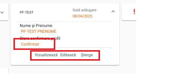 Odata confirmata crearea profilului, acesta va fi vizibil in lista profilelor putand fi vizualizat, editat sau sters. Stergerea profilului se va putea face doar daca pe acesta nu exista solicitari active.